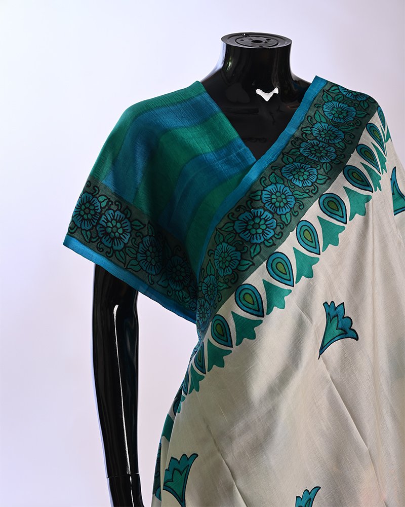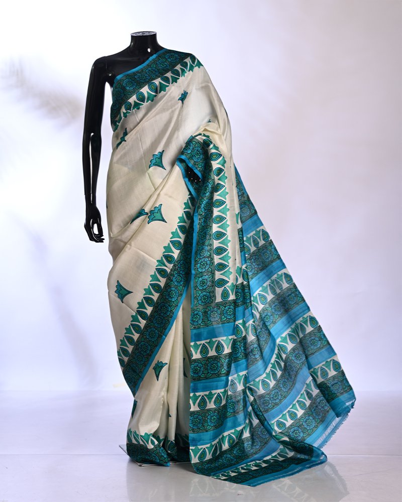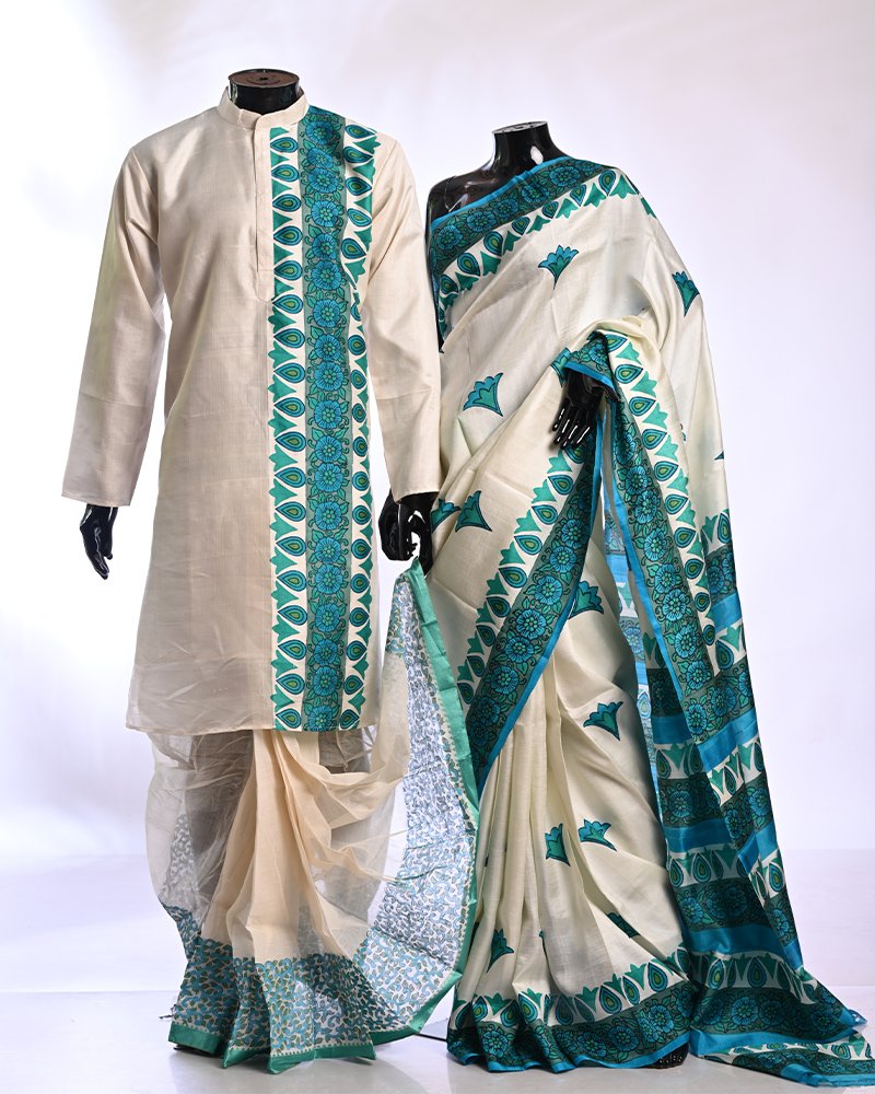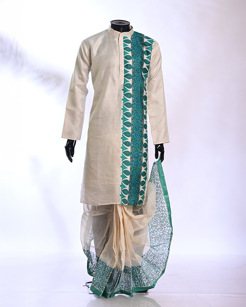 Material: 4 Ply Bishnupuri Silk Work Type: Hand block printed Kurta & dhoti & print hand batik saree Kurta Length: 40 inches Product Code: BTSCS009